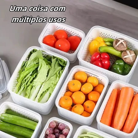 Com vedação eficiente, controle de umidade e ventilação ajustável, esses potes ajudam a conservar os alimentos por muito mais tempo, além de deixar sua geladeira organizada, limpa e visualmente mais bonita. Um acessório simples que faz uma diferença enorme no dia a dia.