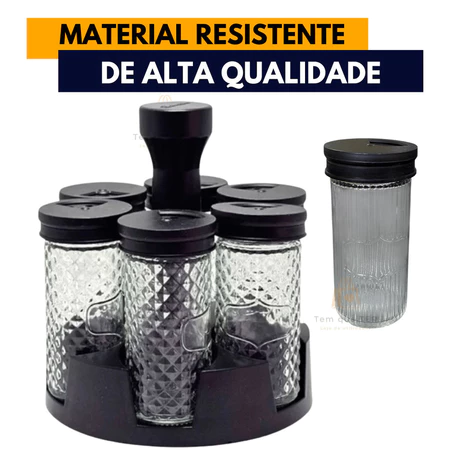 O que é o Kit 6 Porta Condimentos de Vidro com Suporte Giratório 360°?