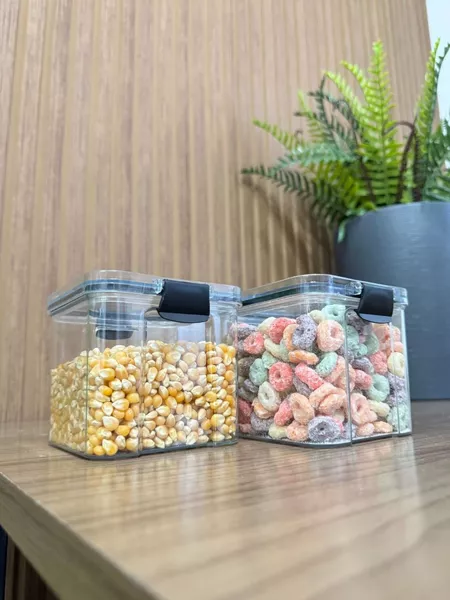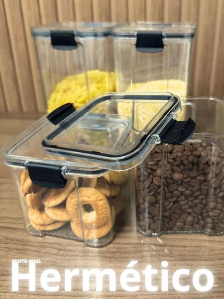 O Conjunto de Potes Herméticos Casuallight é uma linha de recipientes para armazenamento de alimentos fabricados em acrílico resistente, com tampa hermética e vedação em borracha, desenvolvidos para conservar alimentos secos ou preparados por mais tempo.