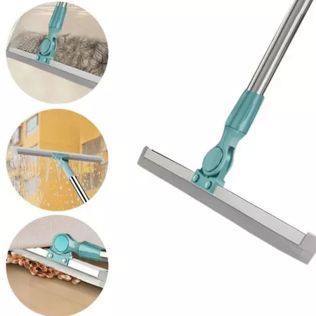 O Rodo Limpador de Silicone Mágico Multi-Funcional é um rodo de uso seco e molhado, equipado com cabo articulado em 180° e lâmina de silicone flexível.