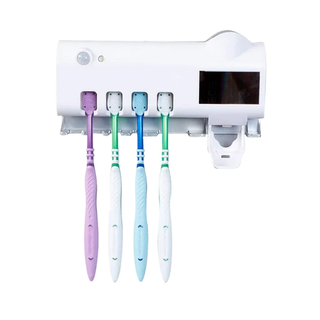 Suporte Dispenser de Escova e Pasta de Dentes com Esterilizador UV: Mais Higiene, Organização e Proteção para Sua Família